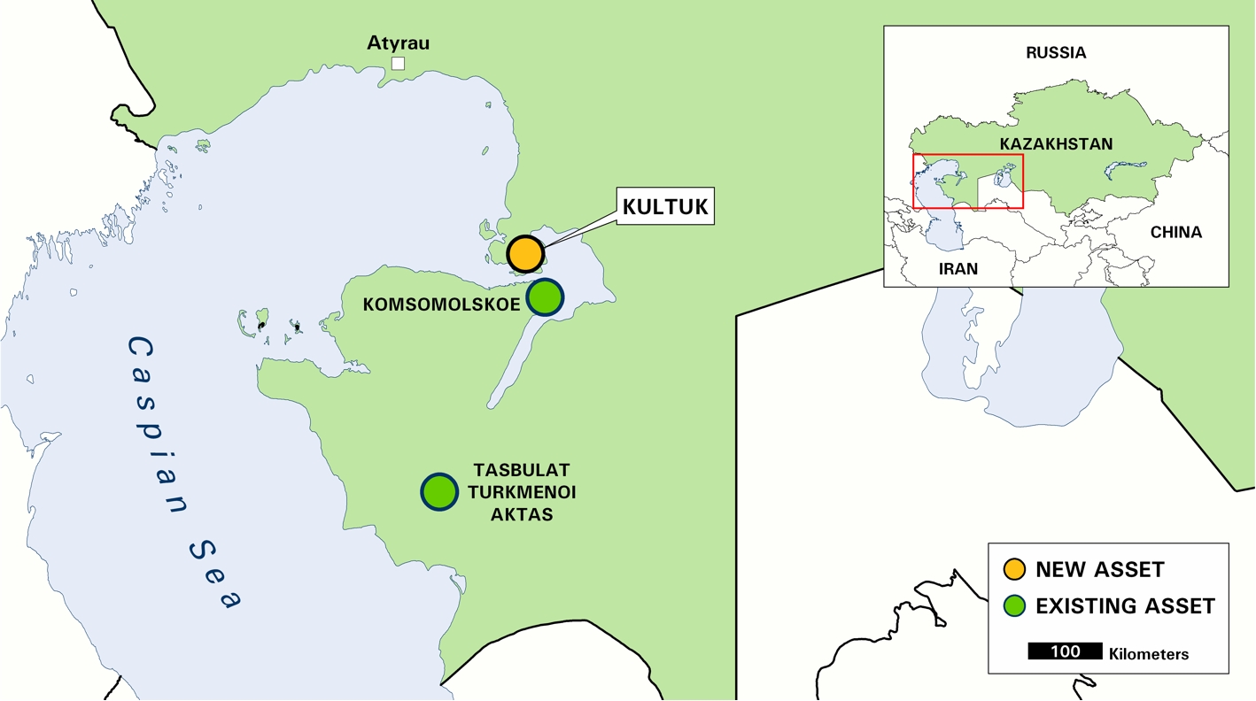 - Korned LLP holds an exploration license including the undeveloped Kultuk oilfield, located only 34 km distant from Petrom’s Komsomolskoe field